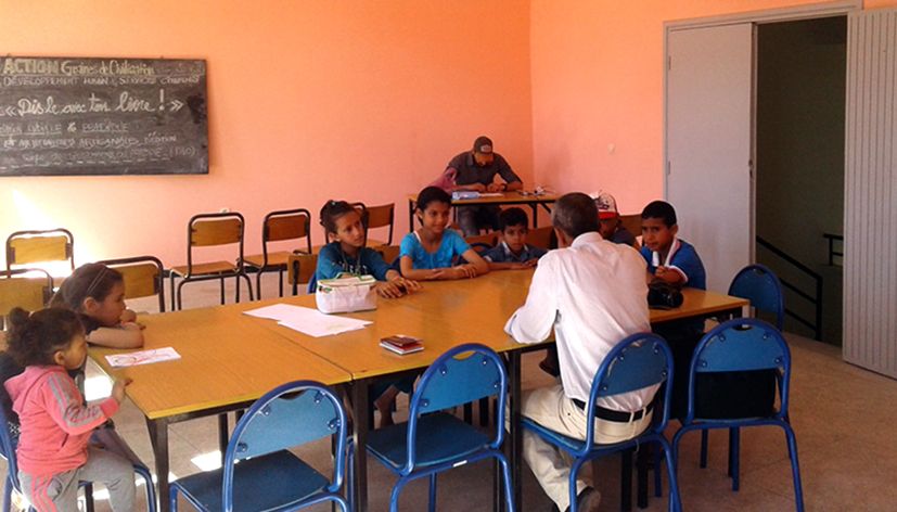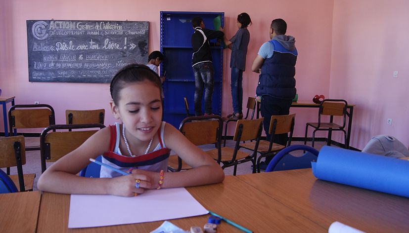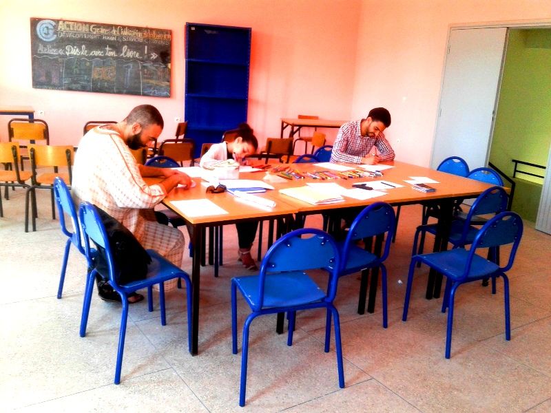 C’est dans cet état d’esprit que l’équipe AGC mobilisée ce jour-là - Abdellaziz, Driss et Younes - fait méthodiquement le nécessaire afin que l’atelier « Dis-le avec ton livre » puisse accueillir ses apprentis dans les meilleures conditions.