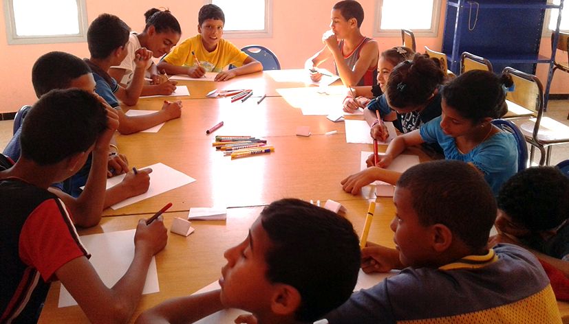 Aux premiers jours de l’atelier, ouvert officiellement depuis deux semaines au sein de Dar Chabab Oulad Oujih, les profils et les motivations des enfants et jeunes adultes venus à la découverte ont été remarquables de variété : groupe d’amis désireux d’organiser un tournoi de football entre équipes de quartier, écoliers venus préparer la fête d’une colonie de vacances, lycéens en quête de conseils techniques de préparation de leurs examens…